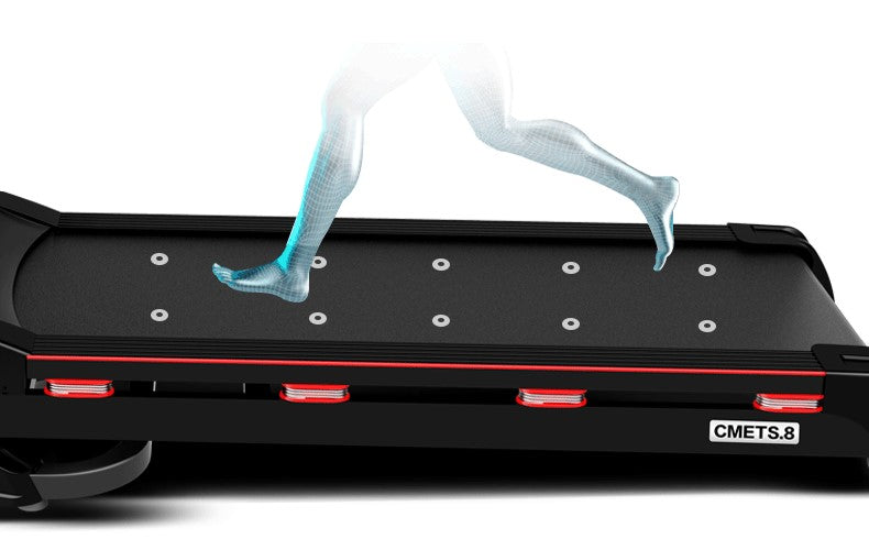The treadmill features a reinforced shock-absorbing deck with 8 high-performance embedded springs and dampers (CMETS8 – Multipoint High Flexibility Springs). This advanced cushioning system significantly reduces impact on joints, knees, and lower back, allowing longer and safer workouts.